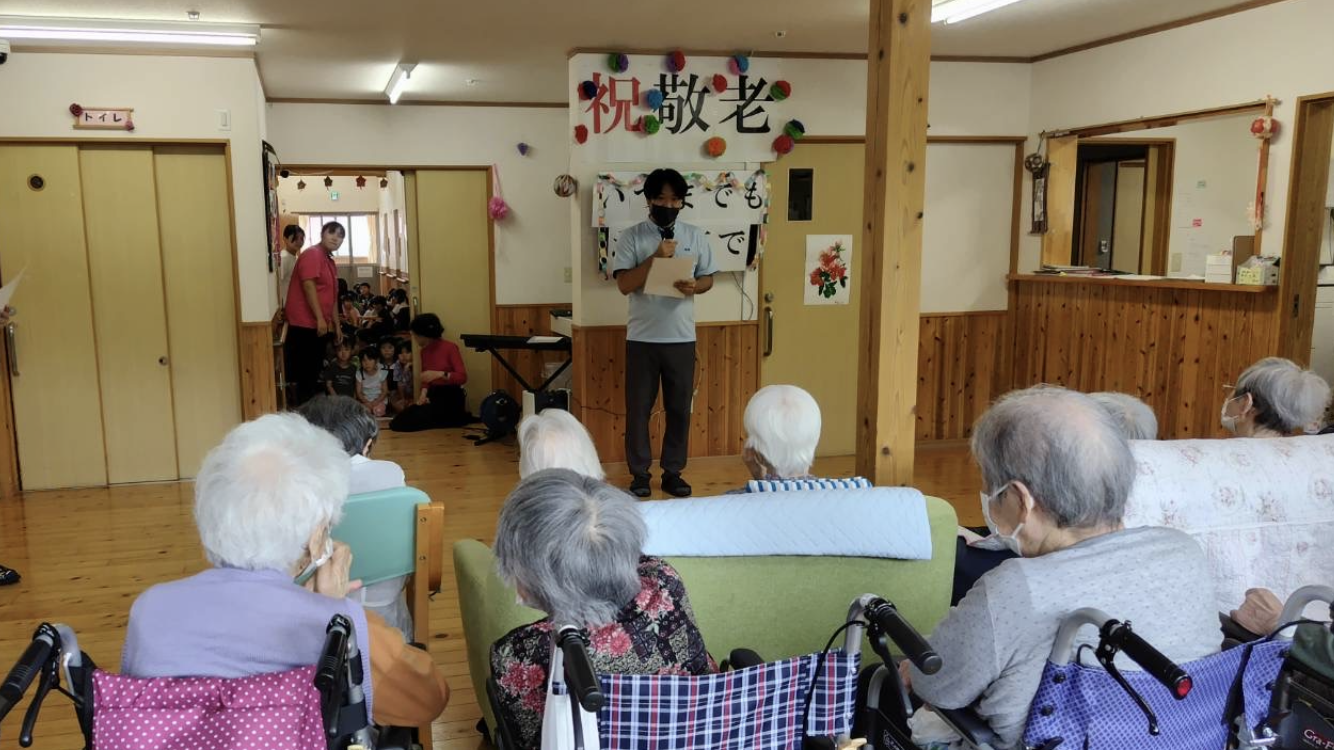 先日、当施設では敬老会を行いました。入所者の皆様に感謝の気持ちを伝えるとともに、楽しいひとときを過ごしていただくために、様々な企画を用意しました。まずは、代表からの挨拶とお祝いの言葉で始まりました。次に、近くの保育園児からダンスのパフォーマンスがありました。入所者の皆様も一緒に手拍子や歌声を合わせて、盛り上がりました。最後に、紅白饅頭とお茶を振る舞いました。入所者の皆様は、笑顔でお話ししながら、美味しく召し上がっていました。敬老会は、和やかな雰囲気の中で終了しました。入所者の皆様に喜んでいただけたことを嬉しく思います。今後も、当施設では入所者の皆様の幸せを第一に考えたサービスを提供してまいります。